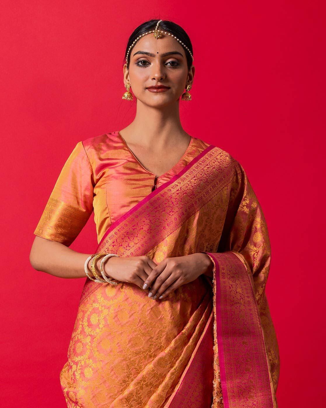 Pre-Draped Saree with Embroidered Blouse